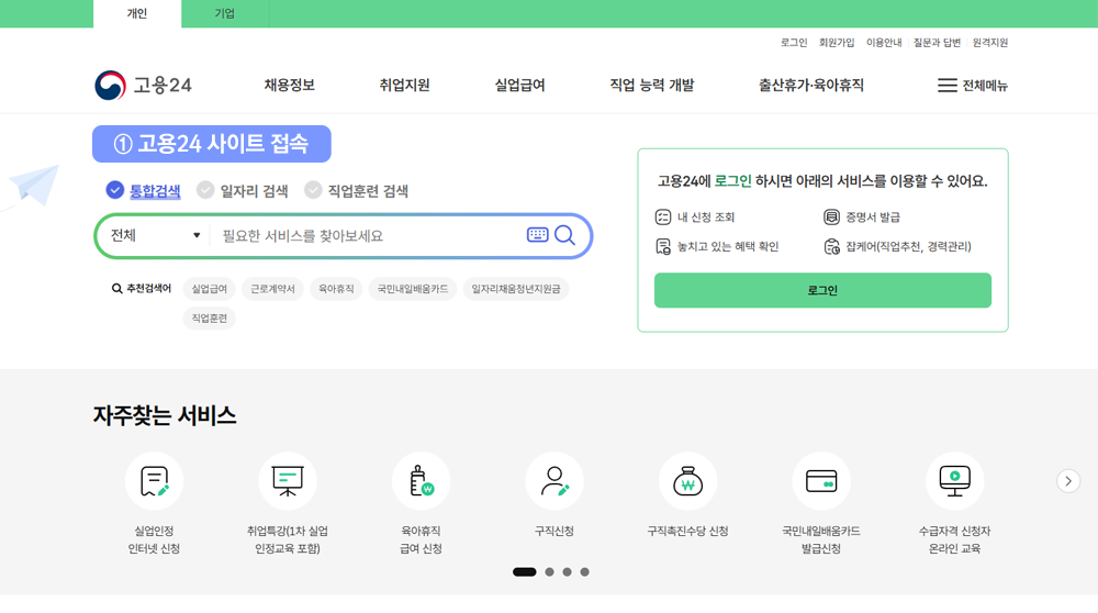 ① 고용24 접속(https://www.work24.go.kr/)