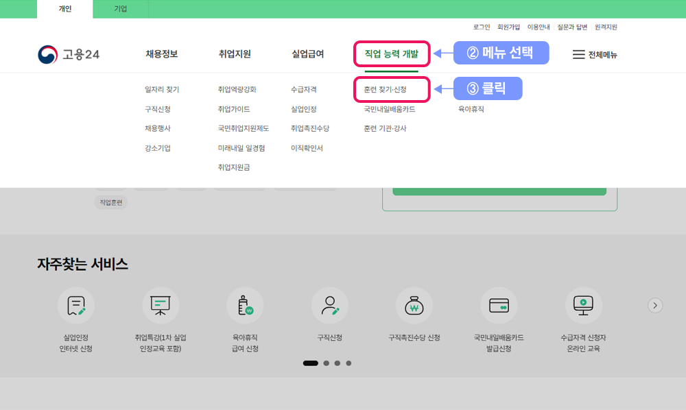 ③ 훈련 찾기·신청 클릭